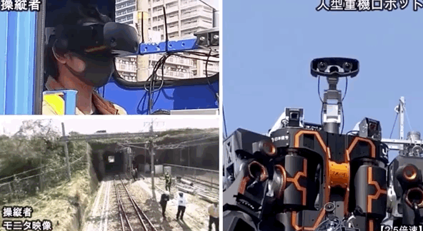 ▲图片来自:JR West操作员戴上 VR 头显设备后 ,机器人头部的摄像头拍摄的画面就会实时显示在 VR 设备里。如果操作员的头转换方向,机器人的摄像头也会随之转动(摄像头有点像 Wall-E ),仿佛操作员身处实地去观察情况。